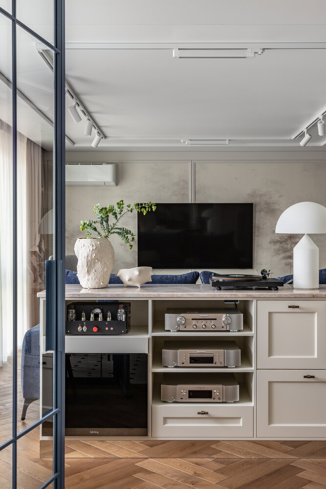 Фотография: Гостиная в стиле Современный, Квартира, Проект дня, Москва, Тишинка, Кирпичный дом, 2 комнаты, 60-90 метров, Анастасия Козловская – фото на INMYROOM