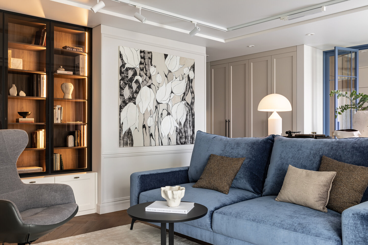 Фотография: Гостиная в стиле Современный, Квартира, Проект дня, Москва, Тишинка, Кирпичный дом, 2 комнаты, 60-90 метров, Анастасия Козловская – фото на INMYROOM