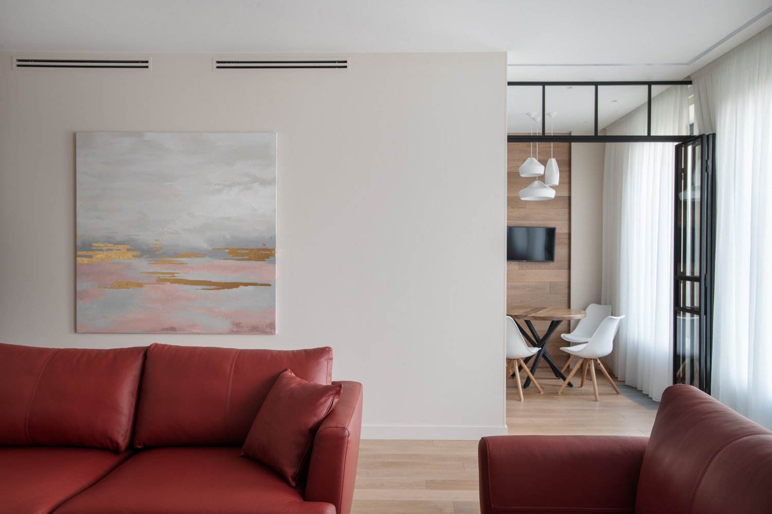 Практичный интерьер для семьи с двумя детьми и собакойДизайн