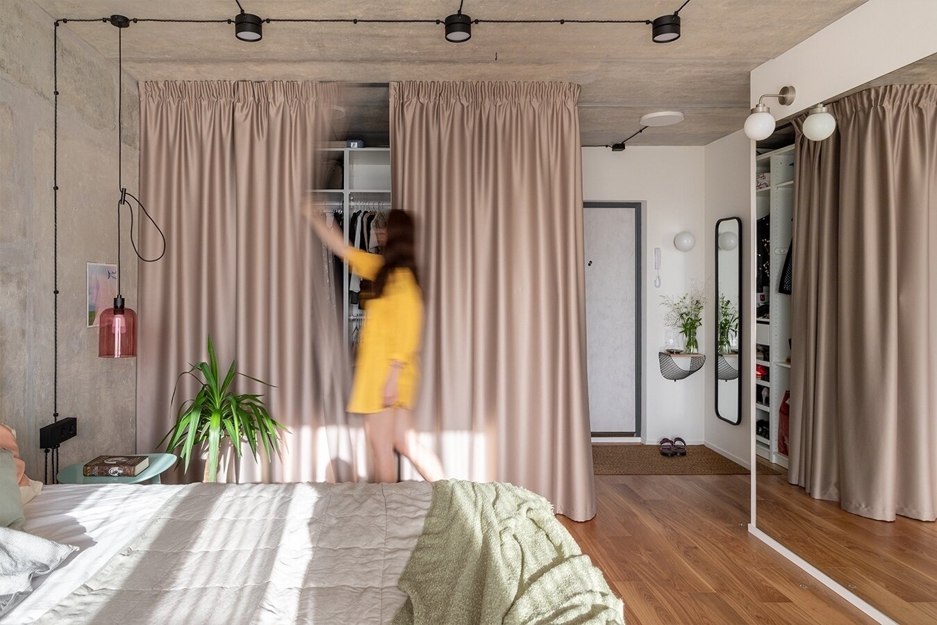 Фотография: Спальня в стиле Лофт, Малогабаритная квартира, Квартира, Проект недели, Москва, Панельный дом, 1 комната, 40-60 метров, КубКвадрат – фото на INMYROOM
