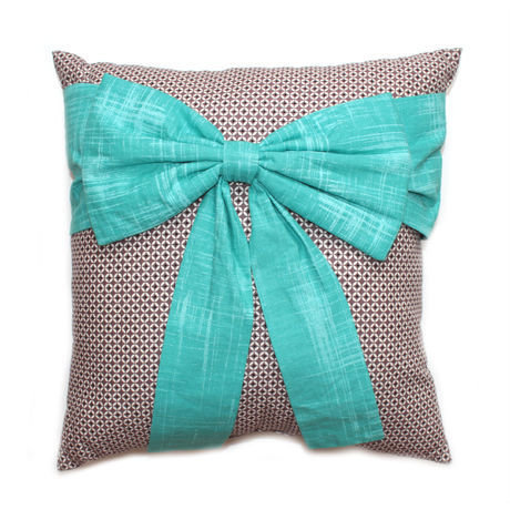 Декоративная подушка с бантом, бирюза