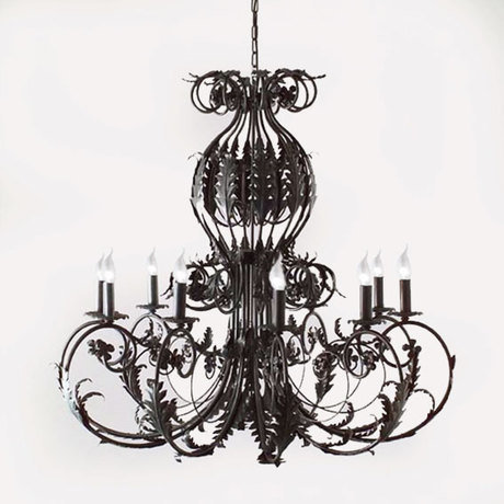 Люстра металлическая c покрытием коричневый с серебряной фольгой. Световых элементов десять.