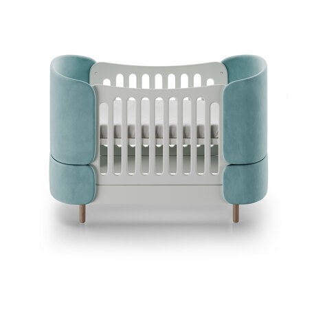 Кроватка подойдет для детских комнат от 9 кв.м. Благодаря компактным размерам (143×99×74 см) и лаконичному дизайну впишется даже в небольшое пространство. Сочетание белого и бирюзового — универсальное решение для комнат и мальчиков, и девочек.Растет вместе с ребенком