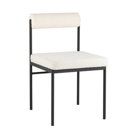Ищете стильный стул, который будет не только функциональным, но и станет акцентом в интерьере? Стул «Балла» соединяет в себе четкую геометрию форм с комфортной посадкой. Его минималистичный каркас из черного металла и мягкая обивка из букле молочного цвета выдерживают нагрузку до 120 кг. Три главных преимущества: - Практичная букле-обивка — материал с плотной фактурой, устойчивый к износу даже при ежедневном использовании - Металлический каркас с черными ножками — придает легкость конструкции и впишется в любой современный интерьер - Продуманная эргономика — оптимальное соотношение высоты и глубины для комфортной посадки Стул отлично впишется в помещение от 9 кв. м. Компактные размеры (78 × 55 × 47 см) делают его идеальным как для небольшой кухни, так и для просторной столовой. Подойдет тем, кто ценит современную эстетику и функциональность, но не хочет жертвовать комфортом.Технические детали