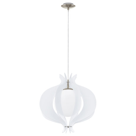 Количество ламп: 1, Мощность: 60, Назначение светильника: подвесной, Стиль светильника: модерн, Материал светильника: металл, Диаметр: 420, Высота: 1100, Тип лампы: накаливания, Патрон: Е27, Цвет арматуры: матовый никель, Вес нетто: 2.643